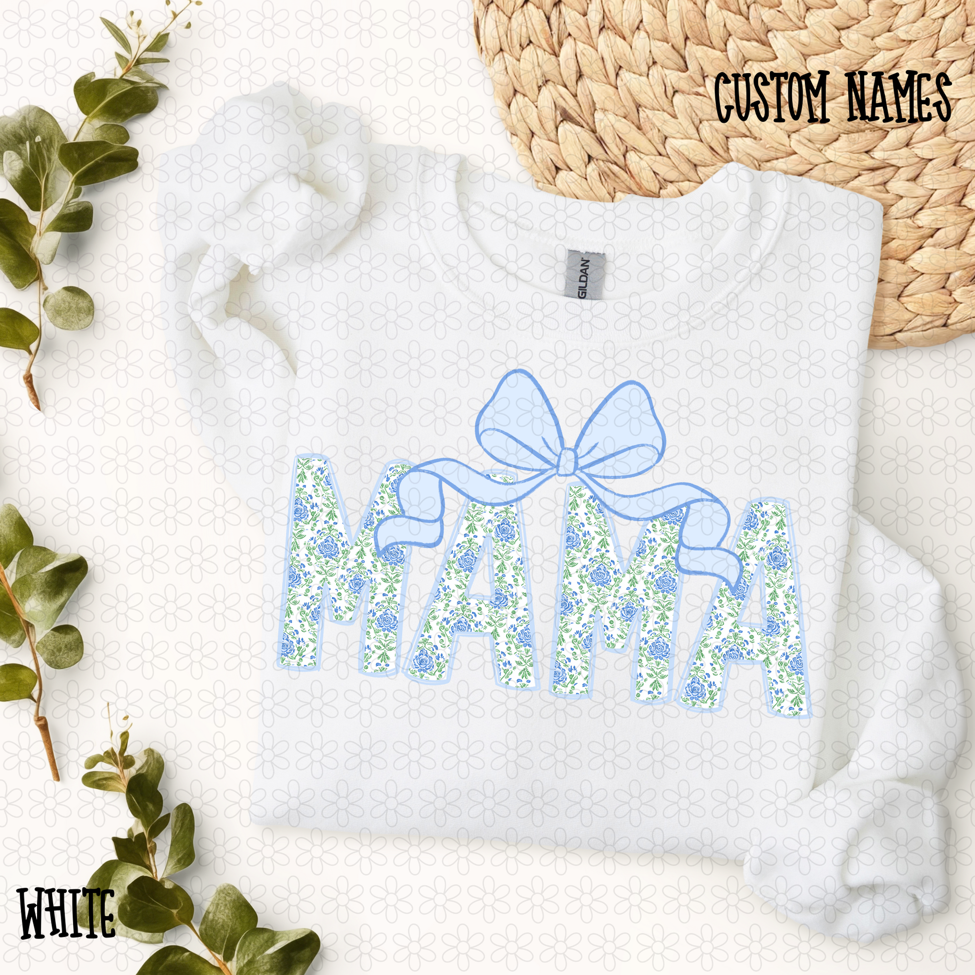 Blue Floral Bow Custom Name DTF Transfer