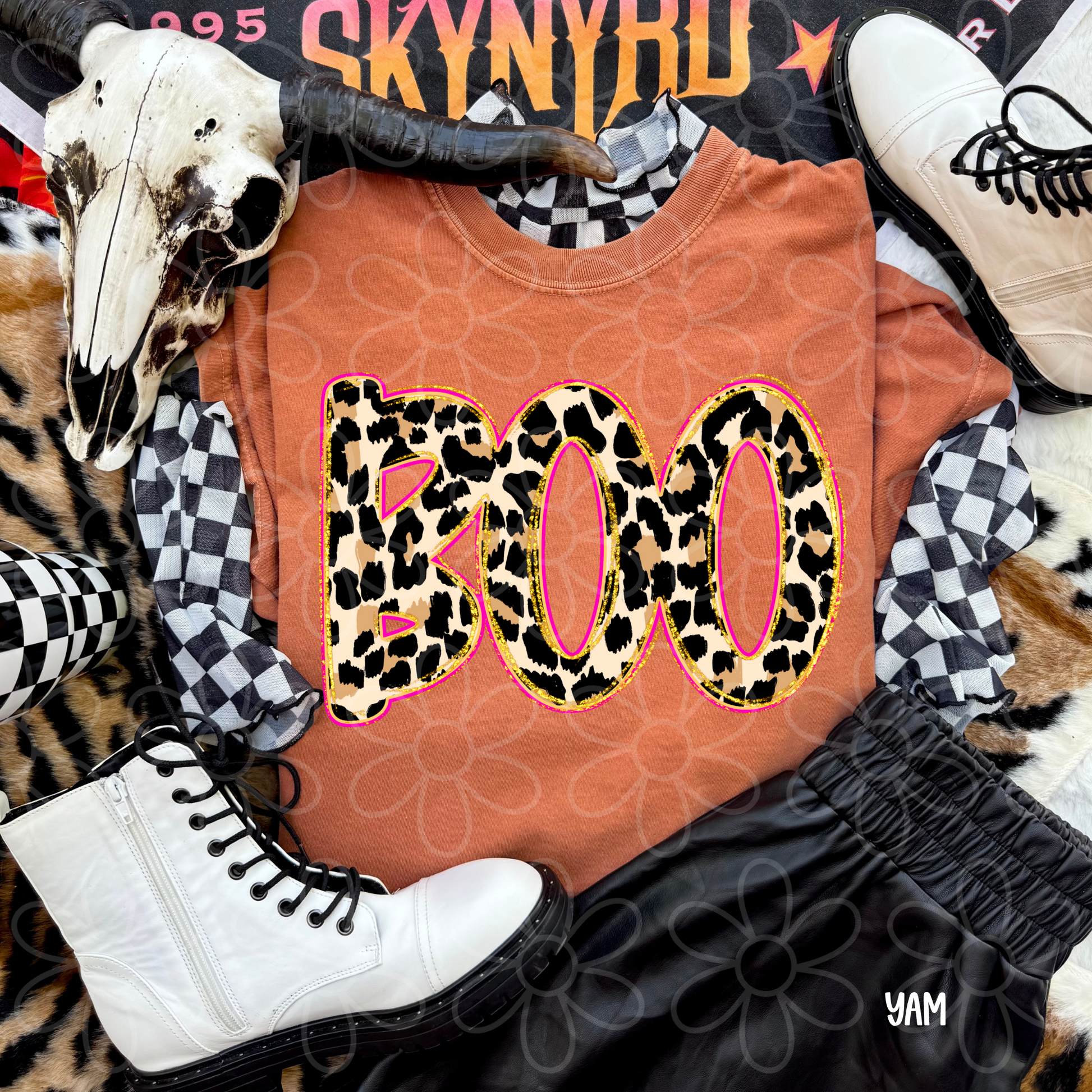 Boo Leopard Glitter Pink Completed Tee