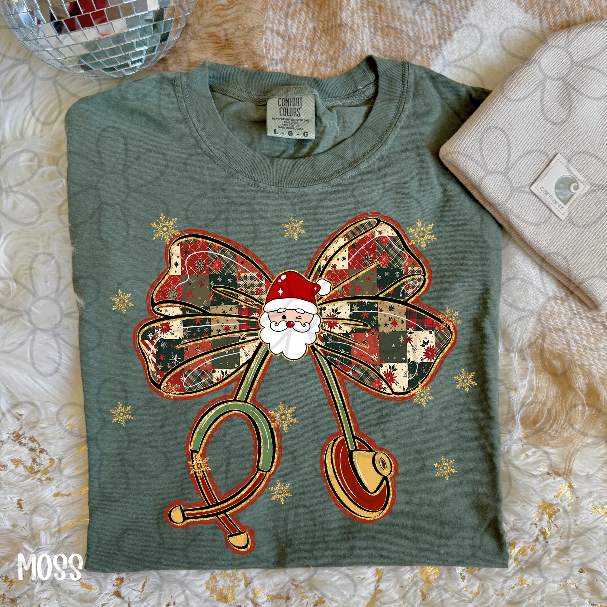 Gold Christmas Santa Stethoscope Completed Tee