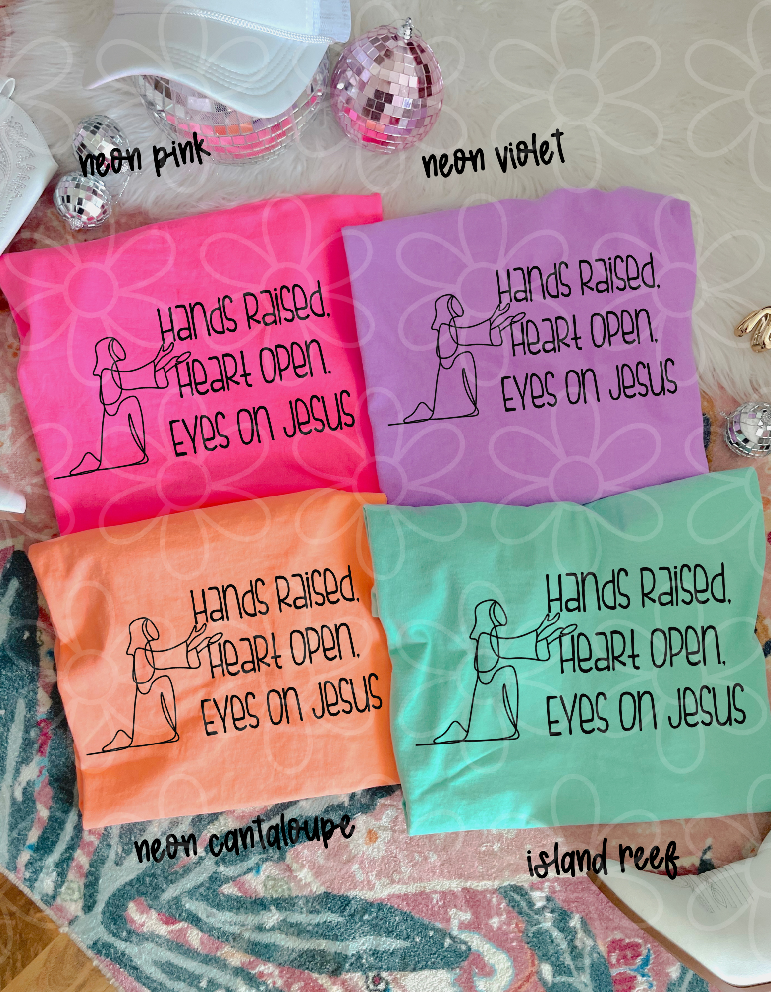 Hands Raised. Heart Open. Eyes On Jesus DTF Transfer