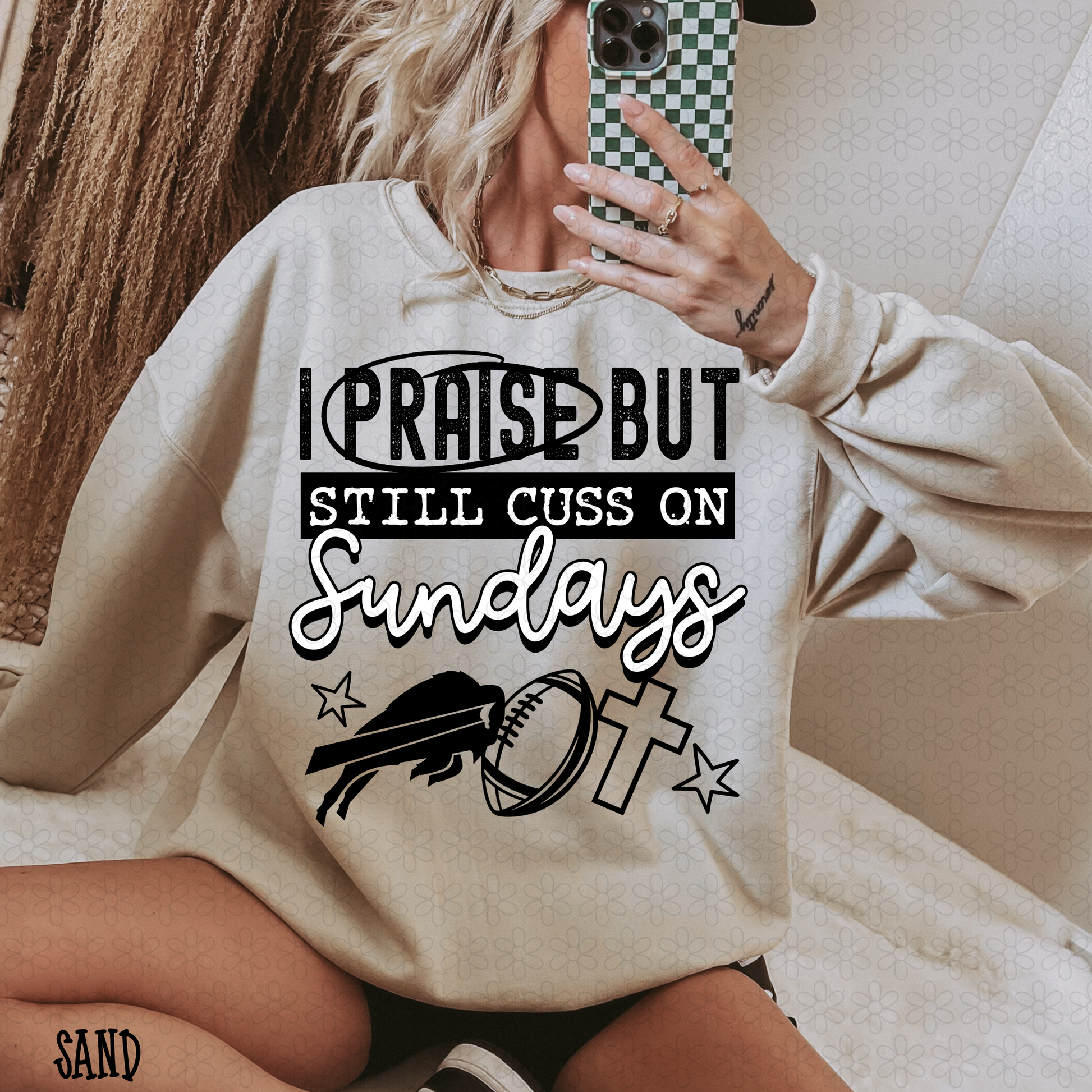 I Praise But Still Cuss On Sundays Football (Multiple Options) Completed Tees
