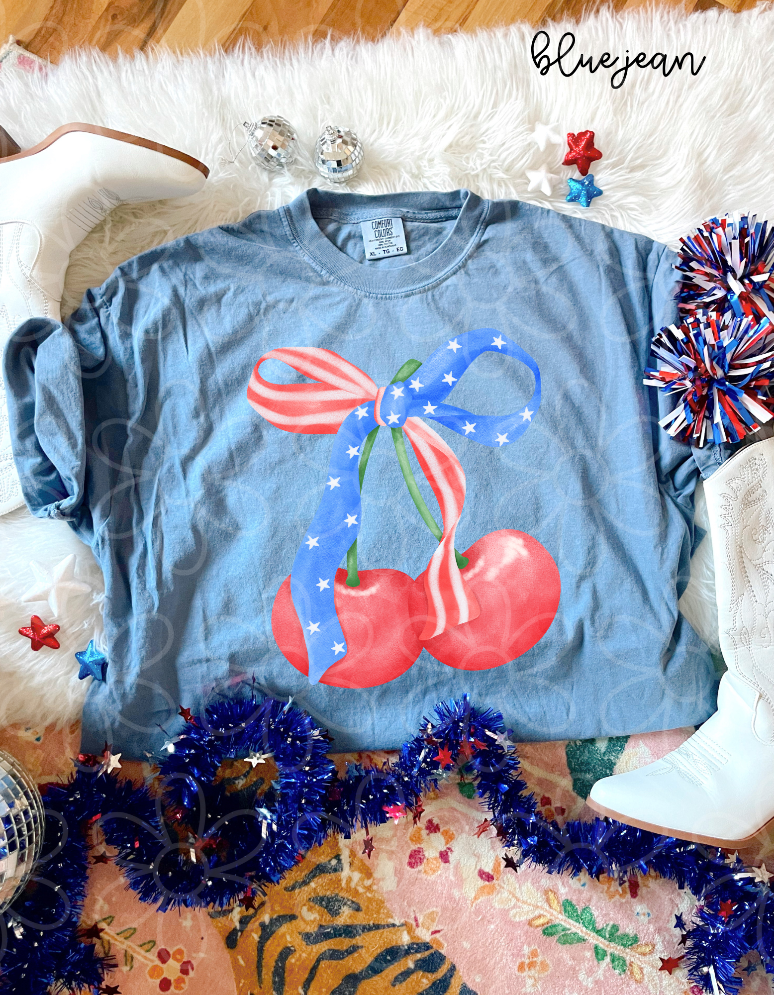 Patriotic Cherry Bow Kids Completed Tee
