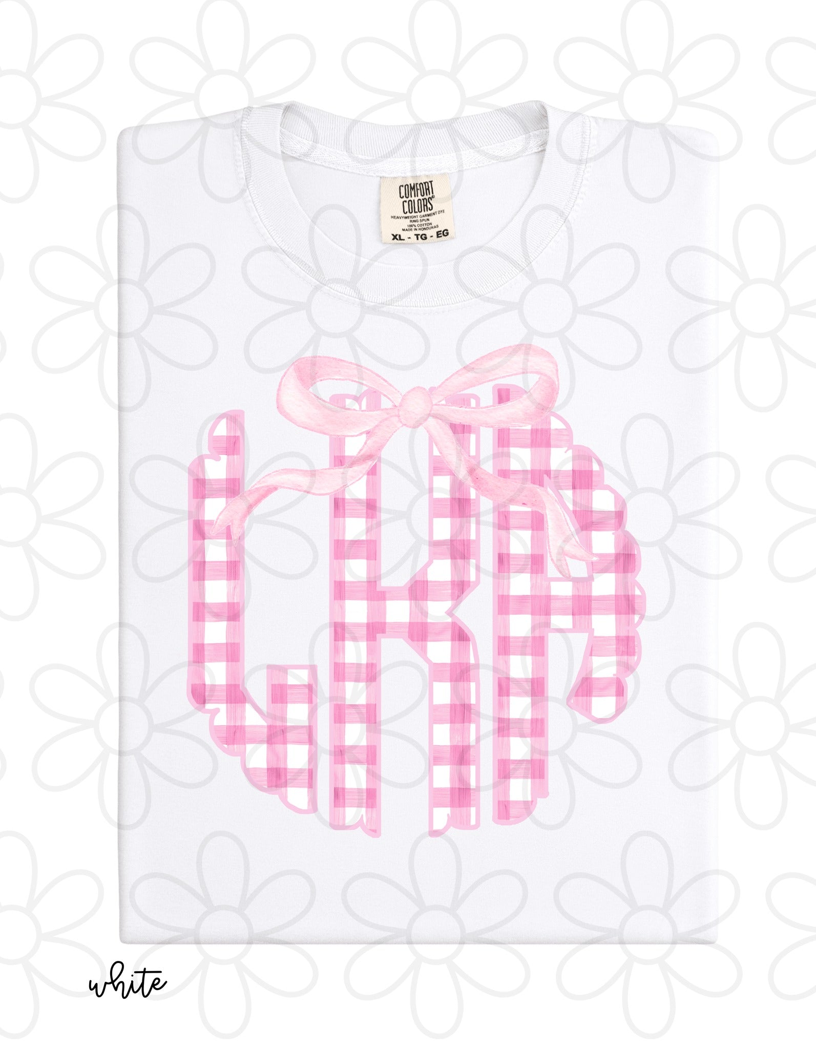 Pink Gingham Bow Monogram Kids Completed Tee