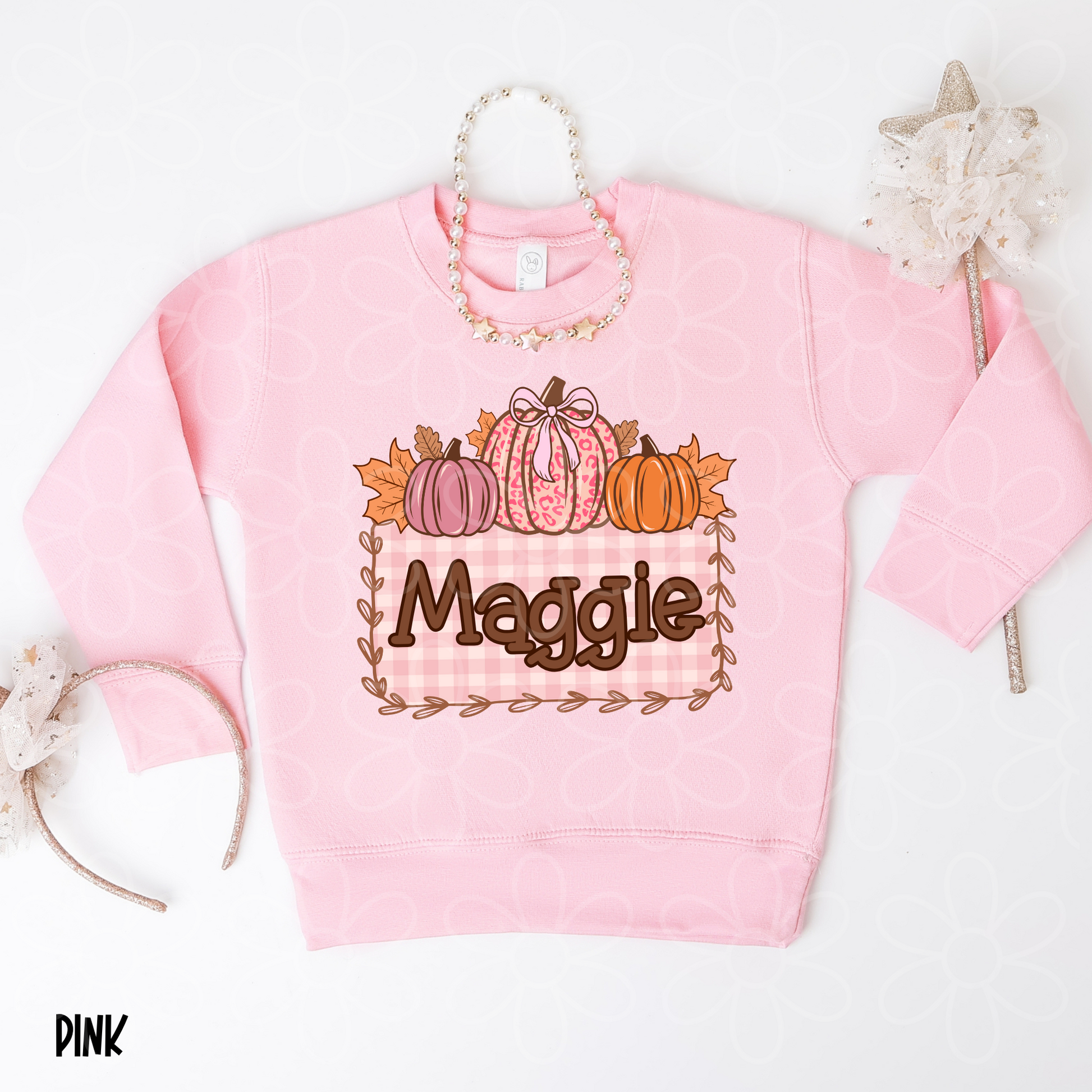 Pink Leopard Pumpkins Custom Name Kids Completed Tee