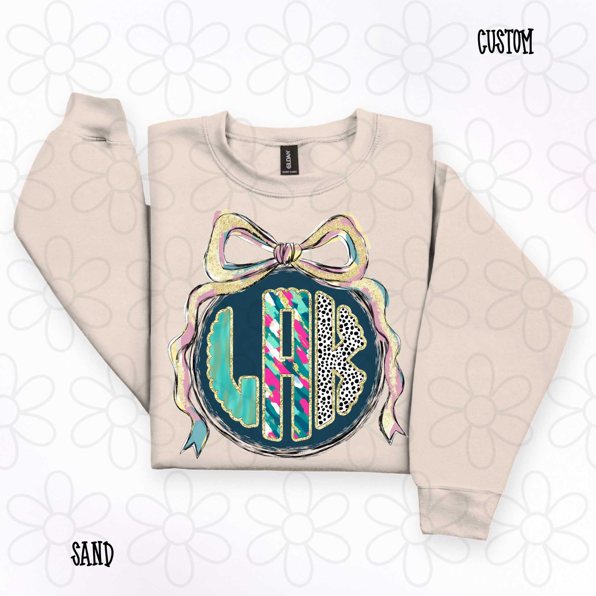 Preppy Christmas Watercolor Custom Monogram DTF Transfer
