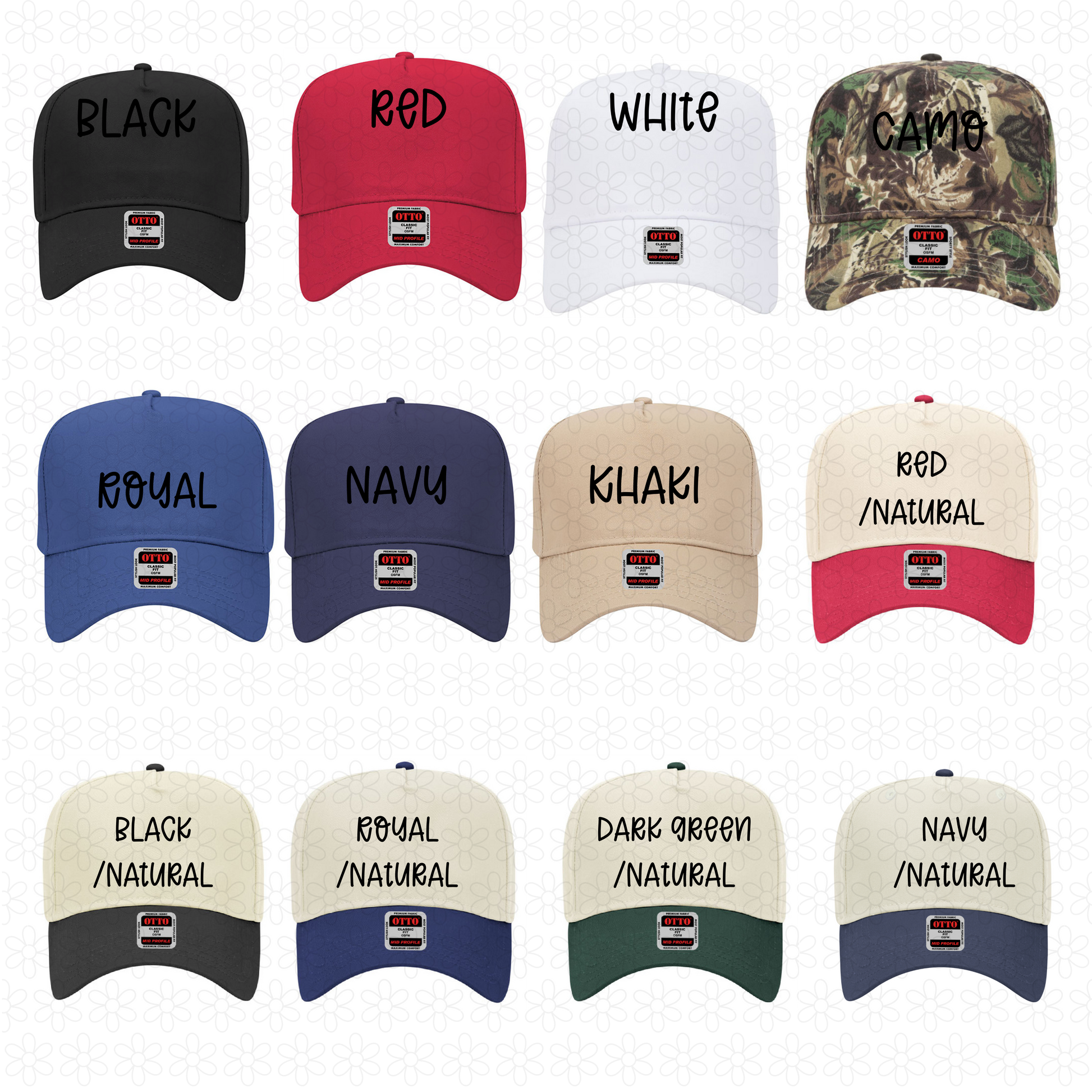 The hats we currently have posted are the Otto Cap 31-069. If you would like to request a different brand or style, please email us your preferred style and we will send you a separate invoice.