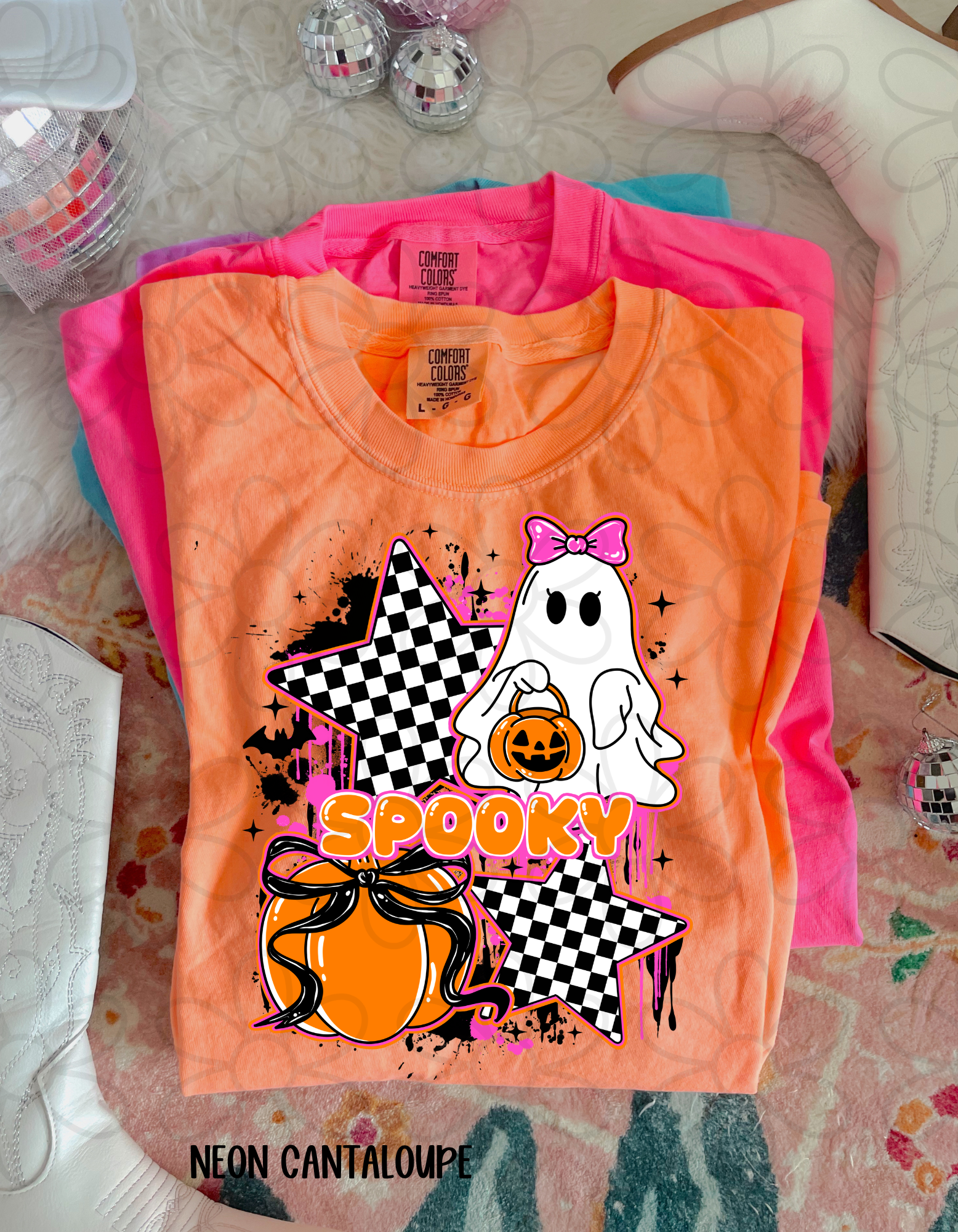 Spooky Ghost Checkered Stars Kids Completed Tee